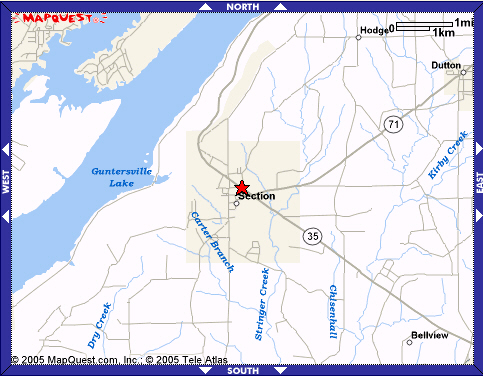 Centrally located in the North Alabama countryside, Breland Bluff Estates sits on the bluff edge of Sand Mountain, in the community of Section, Alabama, just 10 minutes from picturesque Scottsboro. It is a one hour drive from Chattanooga, about three hours from Atlanta, two hours from Nashville and Birmingham, and 45 minutes from Huntsville.